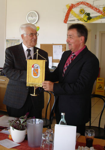 Symbolisch für den Wechsel überreichte Herbert Brehm seinem Nachfolger den Wimpel, der bei den Sitzungen des Vorstandes auf dem Tisch steht.
