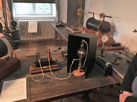 Was nicht jeder zu sehen bekommt, aber die teilnehmenden Mitglieder des Arbeitskreises, ist der geschichtsträchtige Laborrau, in denen am 8. November 1895 Wilhelm Conrad Röntgen die nach ihm benannten Röntgenstrahlen entdeckte. Diese „neuen Strahlen“, die er eher zufällig entdeckte, revolutionierte die Medizin und ist bis zum heutigen Tag fester Bestandteil in vielen medizinischen Bereichen und zahlreichen anderen Anwendungsbereichen. Einige Räume, darunter auch der Laborraum, in dem er seine Entdeckung machte mit der originalen Einrichtung, sind heute als Röntgen-Gedächtnisstätte Teil der Hochschule.