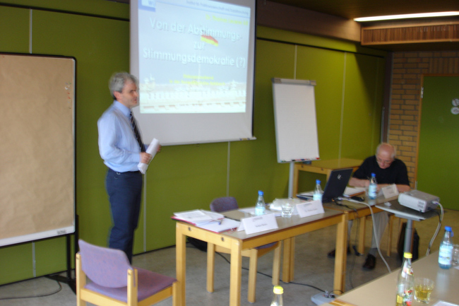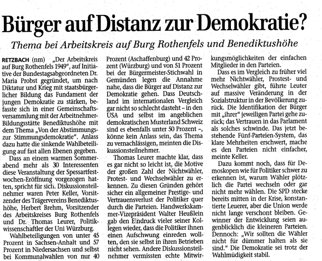 Zeitungsartikel Zum Vortrag: Von der Abstimmungs - zur Stimmungsdemokratie auf der Benediktushöhe in Retzbach