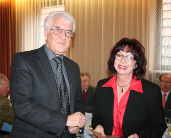 Für langjähriges Engagement beim Arbeitskreis auf Burg Rothenfels überreichte Vorsitzender Herbert Brehm an Margret Grimm (ELektro-Wagner, Lohr) die Dr. -Maria-Probst- Medaille