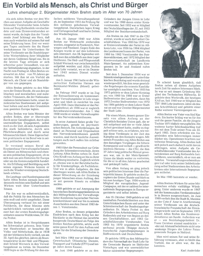 Nachruf in der Lohrer Zeitung von Herrn Anderlohr April 1991